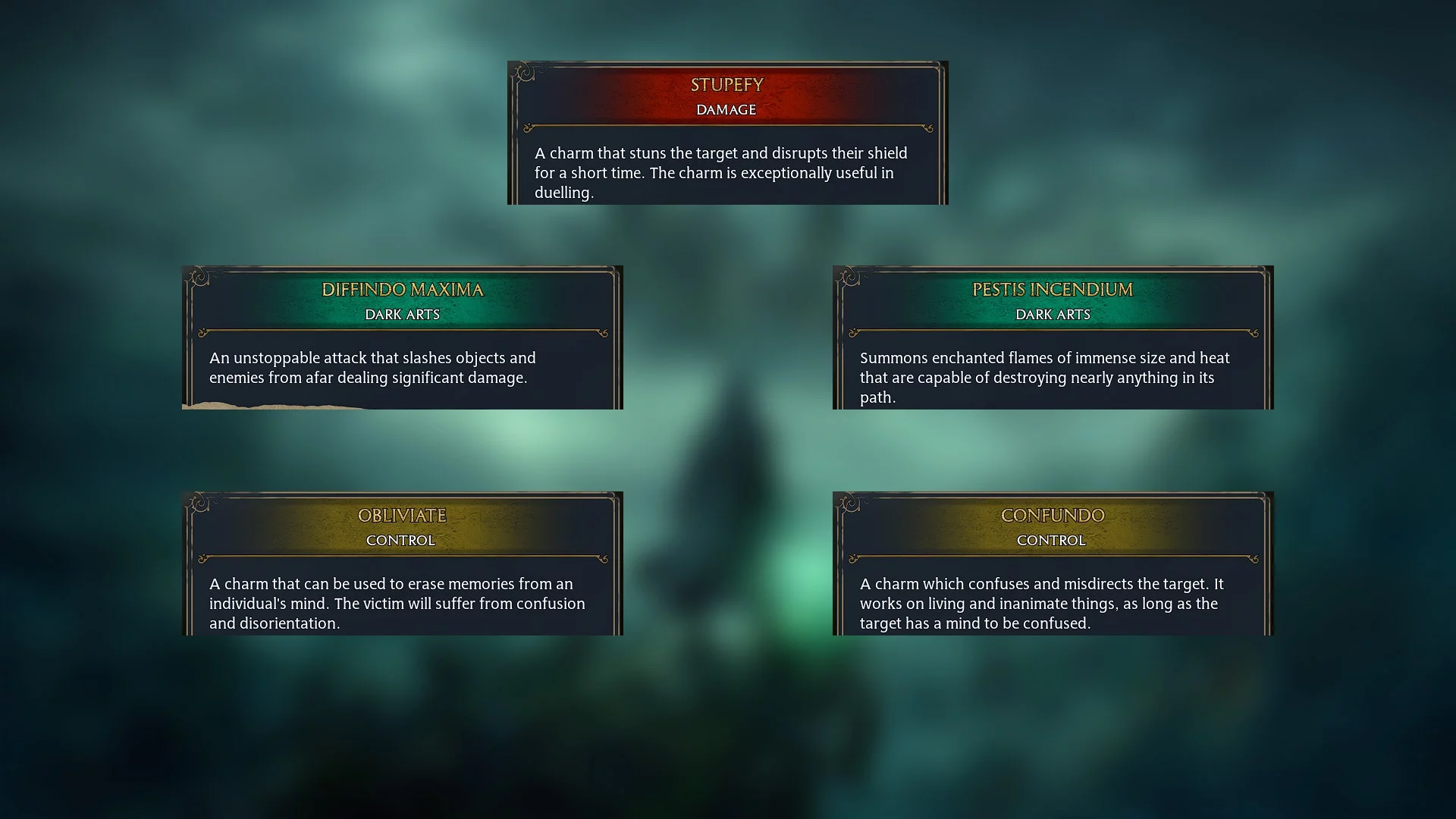 - Stupefy: похоже на Протего при контратаке. Пробивает щиты и наносит небольшой урон;