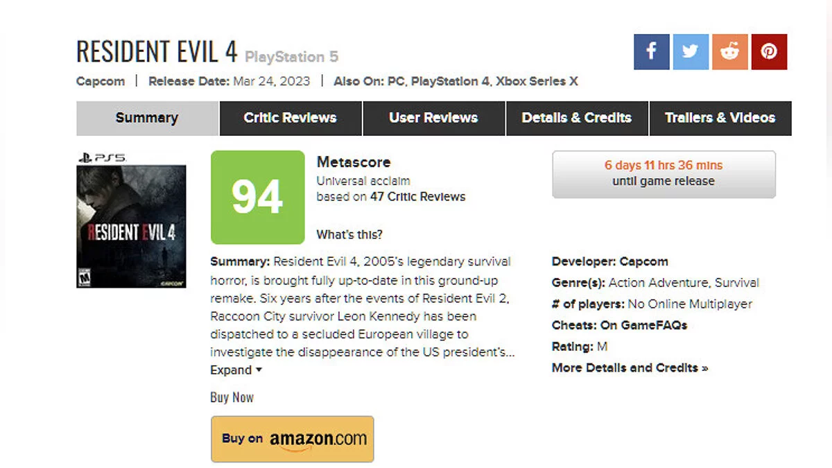 Обновленной «четверке» не хватило лишь двух баллов до оригинальной Resident Evil 4. Зато игра превзошла ремейк Resident Evil 2, у которого 92 балла.