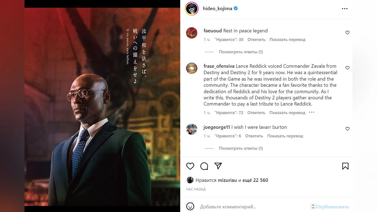 Почтить память актера также взялись и другие популярные личности, включая Хидео Кодзиму (Hideo Kojima).