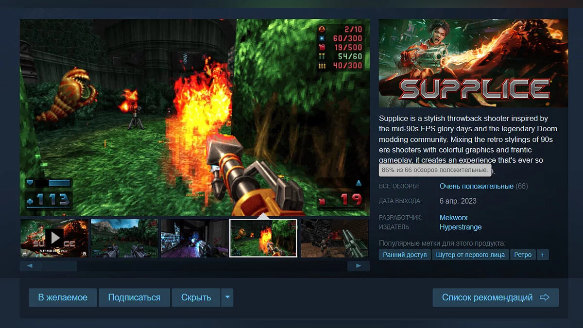Команда разработчиков Mekworx выпустила в раннем доступе Steam шутер от первого лица под названием Supplice, который в первую очередь должен заинтересовать фанатов классических частей Doom.