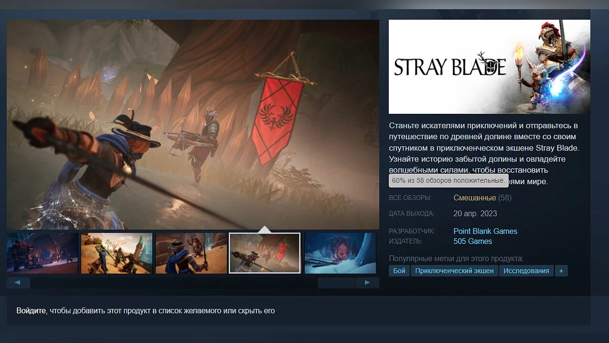 Купить Stray Blade в Steam можно за 1037 руб с учетом скидки 20% (действует до 27 апреля). Игра также доступна в Epic Games Store, Xbox Store (Xbox Series X/S) и PS Store (PS5).