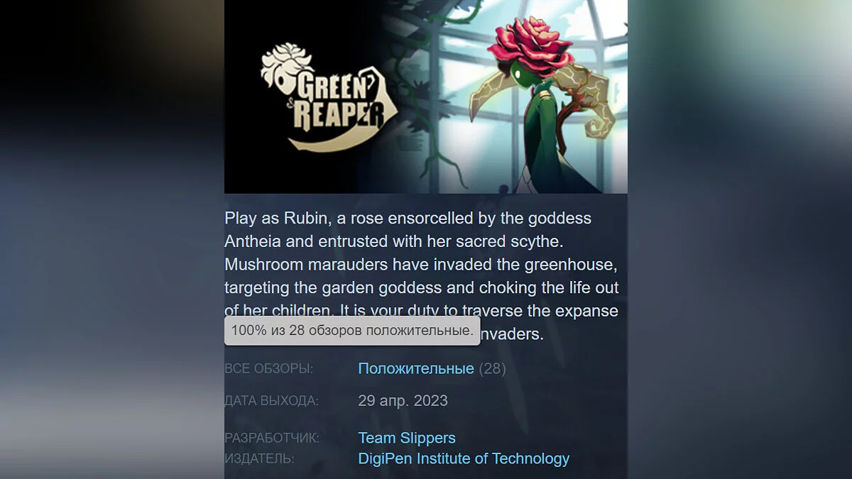В Steam появился короткий, но полностью бесплатный 3D-экшен Green Reaper, который уже получил 100% положительных отзывов. Забрать игру в свою библиотеку можно здесь.