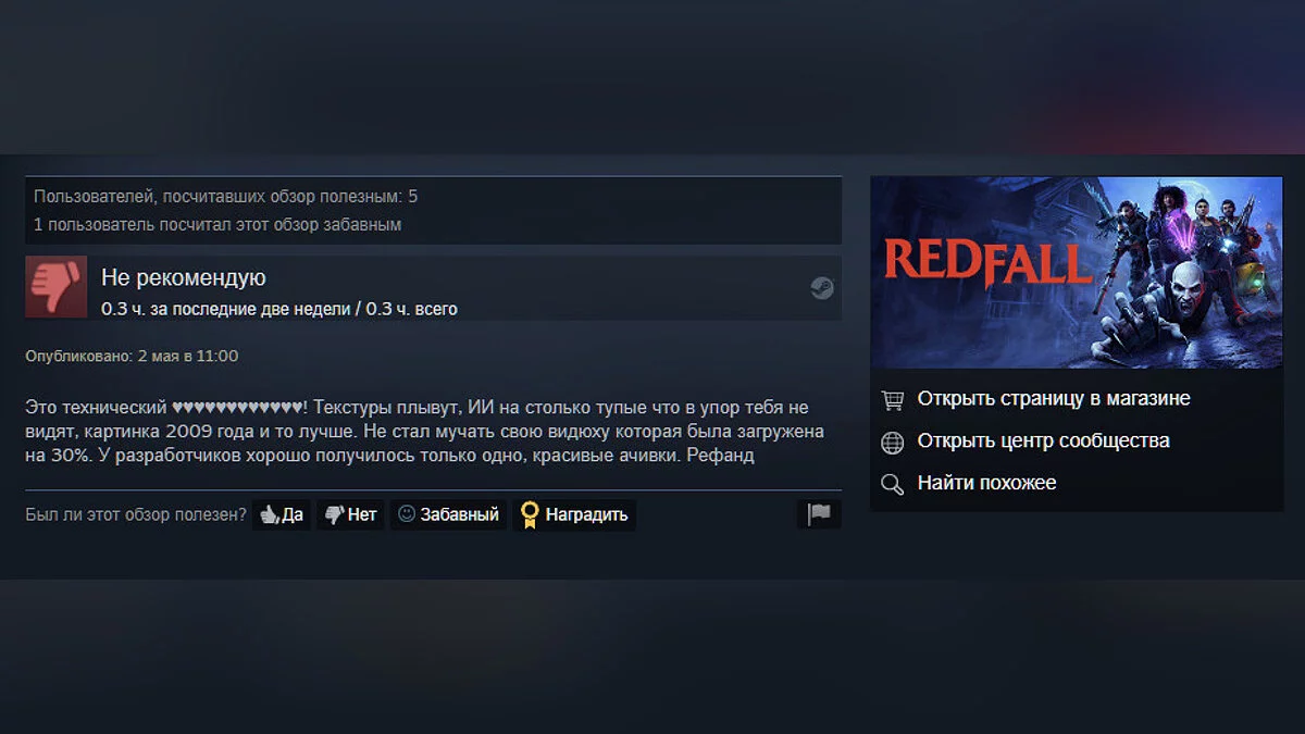 «Картинка из 2009 года»: Redfall от авторов Dishonored получила очень низкие оценки в Steam