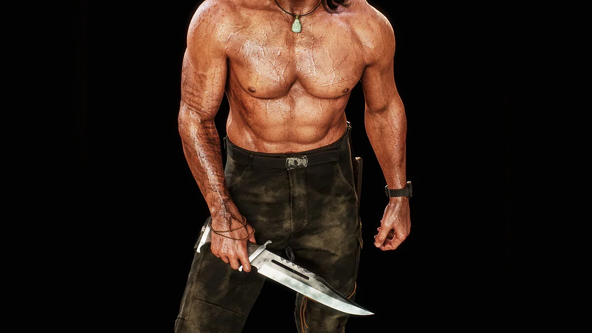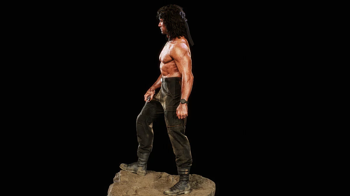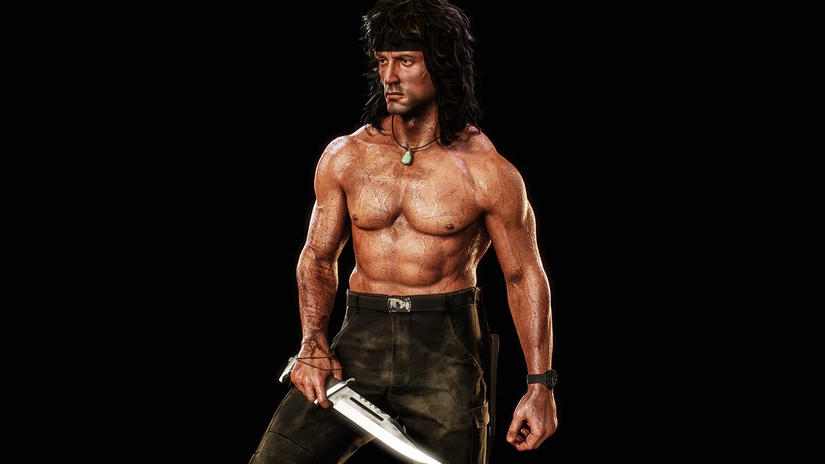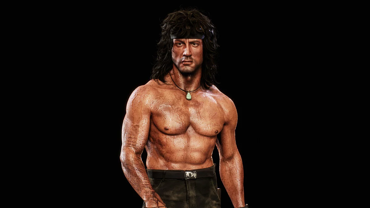 Профессиональный художник Джейк Лэмб (Jake Lamb) с помощью современных технологий воссоздал в деталях Джона Рэмбо в исполнении еще молодого Сильвестра Сталлоне (Sylvester Stallone). Таким этот персонаж мог бы выглядеть в полноценной видеоигре с современной графикой.