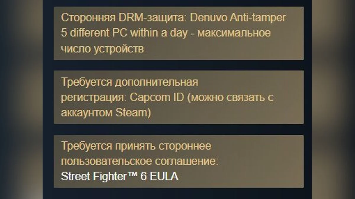 Компания Capcom в последний момент решила добавить DRM-защиту Denuvo в файтинг Street Fighter 6, хотя до релиза остается меньше суток. Об этом стало известно на странице проекта в цифровом сервисе Steam.