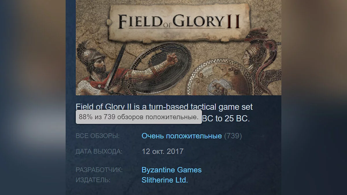 В Steam стартовала бесплатная раздача пошаговой военной стратегии Field of Glory 2, которая получила 88% положительных отзывов. Забрать в свою библиотеку можно стандартное издание — дополнения придётся покупать. Акция продлится до 8 июня 19:00 по московскому времени.