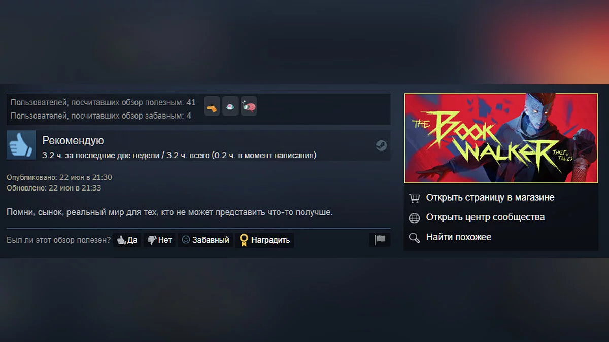 Сейчас для Steam-версии написан 41 отзыв, из них 97% — положительные.