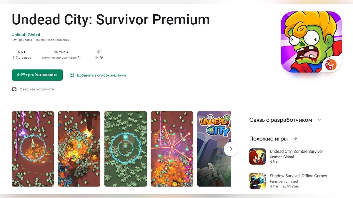 - Undead City: Survivor Premium — игра, в которой игроку необходимо зачистить арену от огромного количества надвигающихся зомби (загрузить бесплатно).