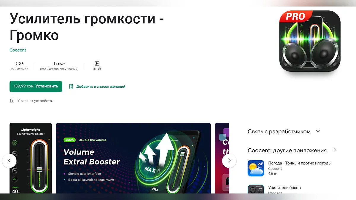 - Volume Booster — Sound Speaker — программа для усиления звука (загрузить бесплатно).