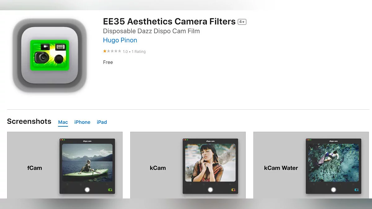 - EE35 Aesthetics Camera Filters — программа с набором фильтров для камеры (загрузить бесплатно);