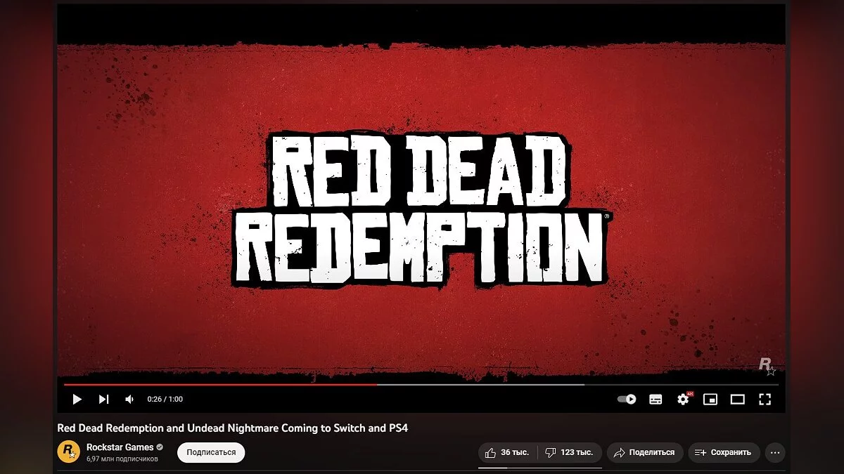 Трейлер переиздания Red Dead Redemption стал одним из самых задизлайканных видео на YouTube-канале Rockstar