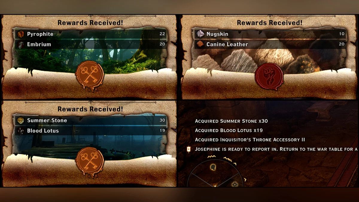 Одним из самых спорных нововведений в Inquisition явилась анимация лута (сбора добычи с врагов). Если раньше достаточно было нажать магическую клавишу R, и герой самостоятельно оббегал местность, моментально собирая всё собираемое, то теперь этот процесс превратился в настоящую рутину, поскольку при каждом таком действии персонаж склонялся и начинал усердно изображать копошение пару секунд. Казалось бы, мелочь, а на деле сбор десятка эльфийских корней на полянке превращался в сущую пытку.