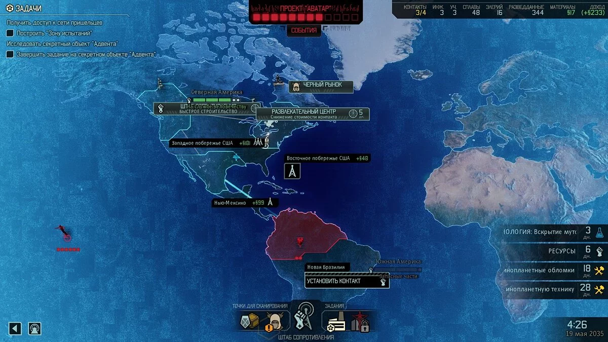 Борьба за планету сменилась контролем над отдельными регионами континентов, которые поставляют ресурсы и при некотором взаимодействии свое влияние на них, как и получаемые деньги, можно увеличить. Лысый мужик никуда не делся — он по-прежнему будет чутко руководить отрядами XCOM и предупредит о надвигающейся угрозе. Разумеется, пришельцы весьма активно влияют на происходящие события, игроку некогда будет отдохнуть и постоянно придется прерываться, занимаясь разными побочными делами.