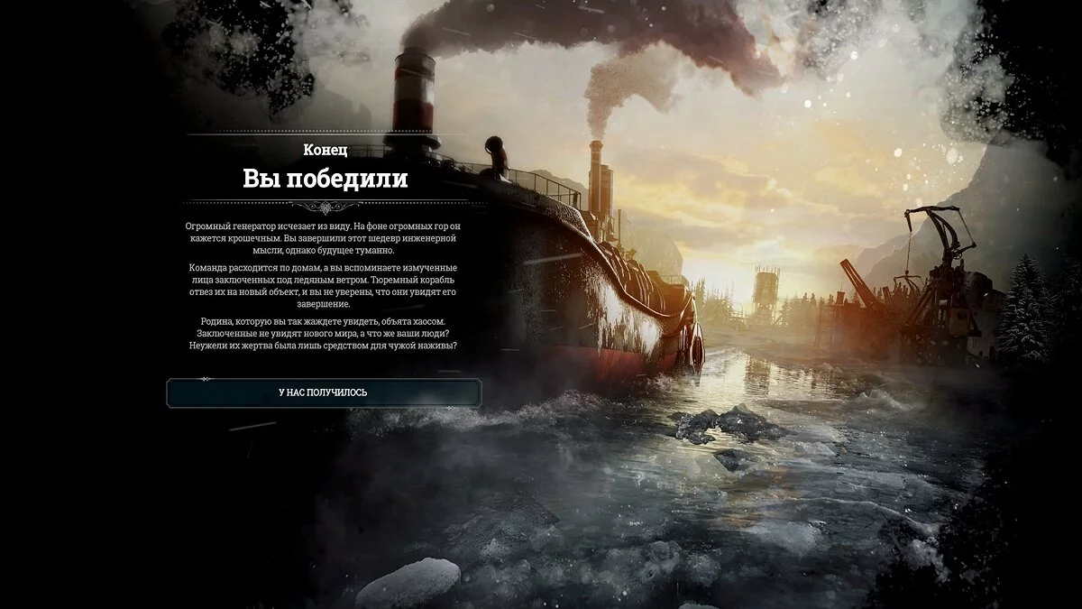 Однако хотелось бы, чтобы на разработку финального DLC Project TVADGYGCJR выделили достаточно денег и времени, и мы получили крутое дополнение, способное громко завершить Frostpunk. Пусть и ценой переноса даты выхода. Просто не торопитесь!