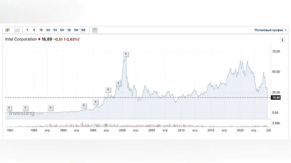 У мережі про падіння акцій Intel: «Якби ви інвестували $10 000 в компанію 27 років тому, зараз у вас було б $10 000» -