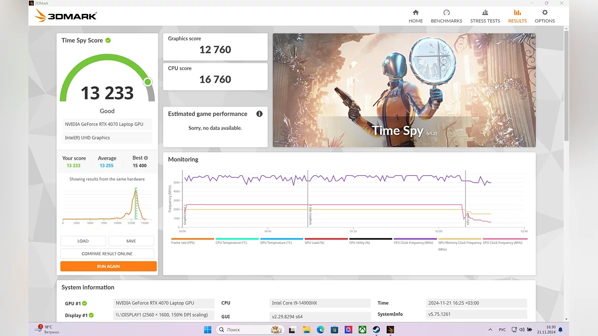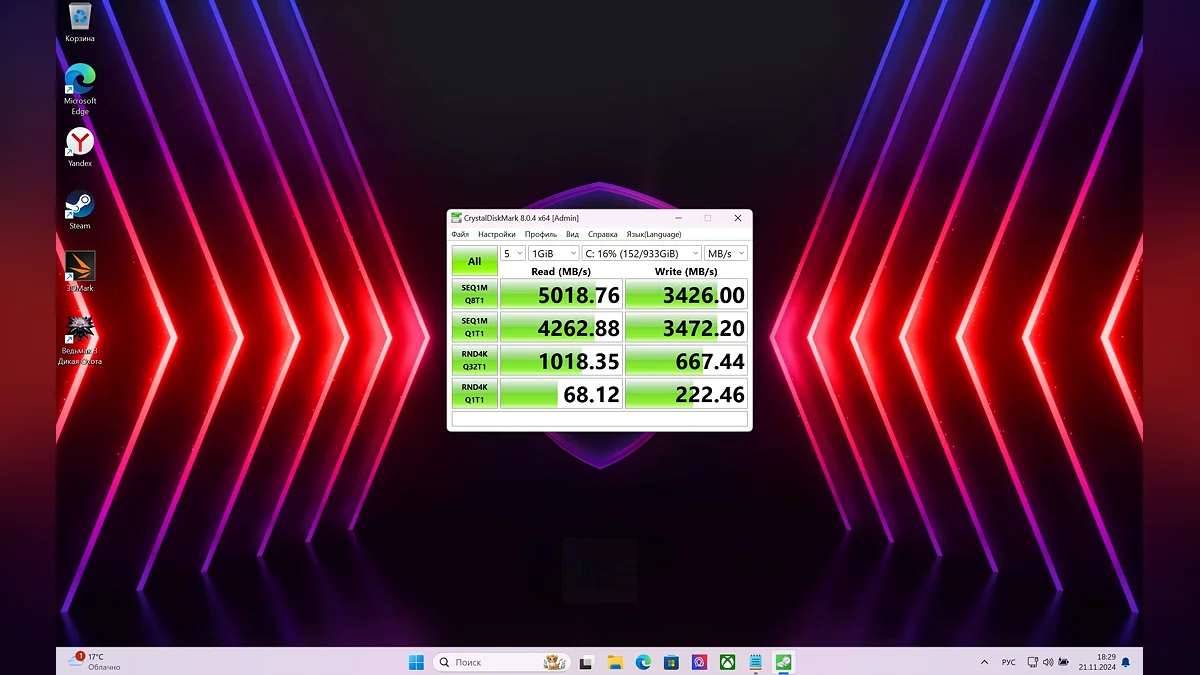 Також ми оцінили потужність ноутбука в 3DMark: в тестах Time Spy, Time Spy Extreme, Steel Nomad, CPU Profile і Storage Benchmark для перевірки швидкості завантаження ігор на SSD.
