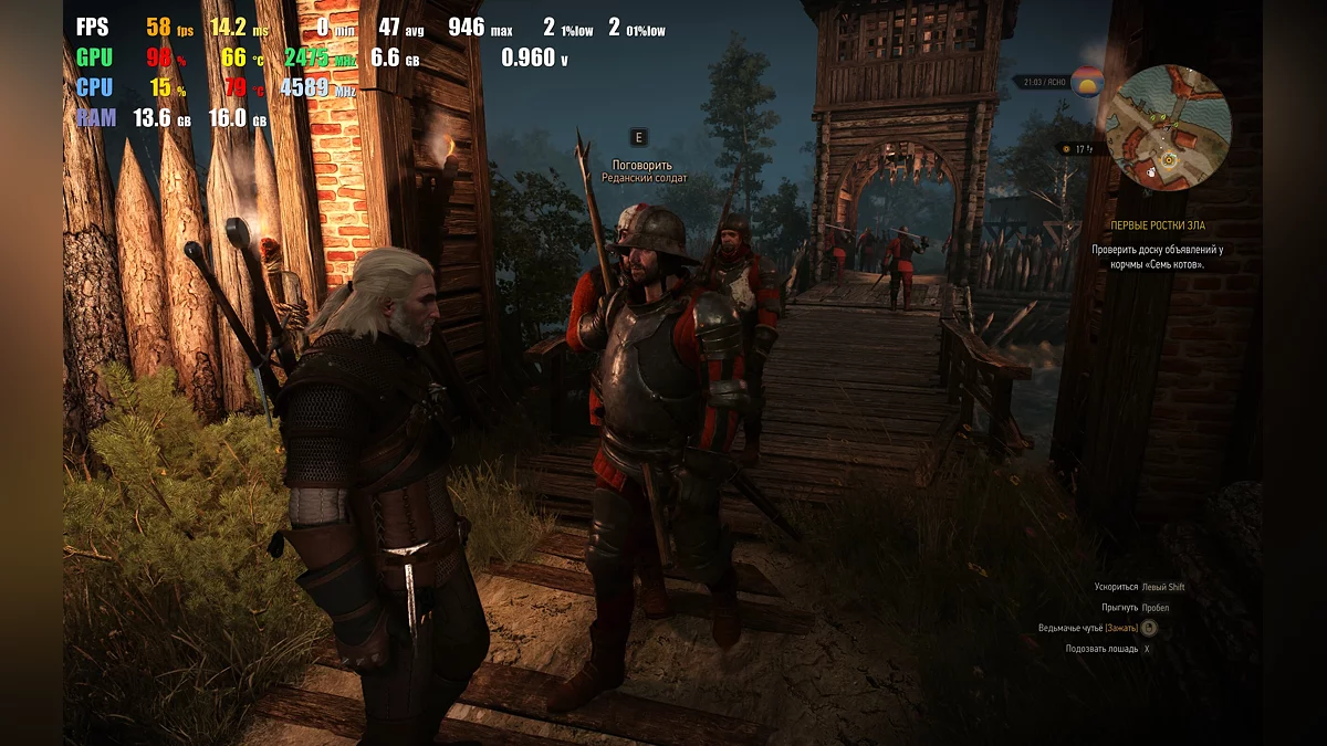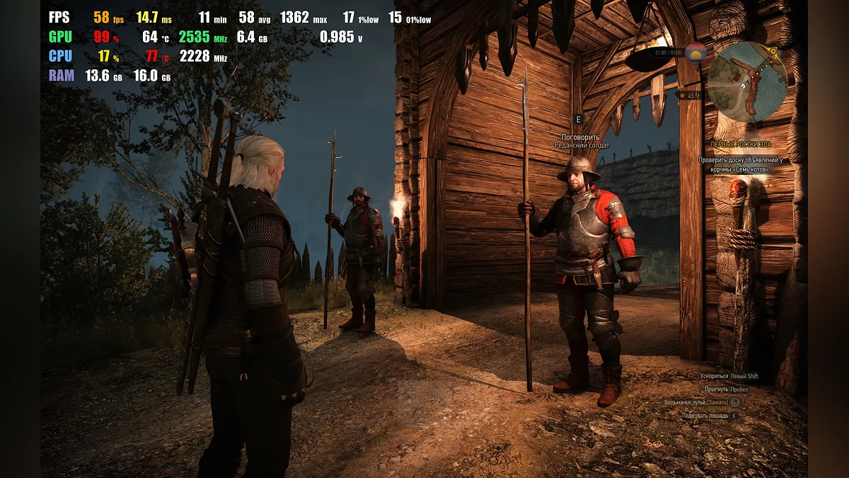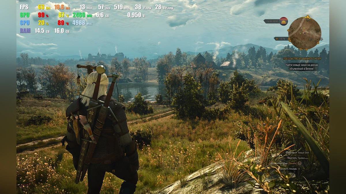 The Witcher 3: Wild Hunt. Усі налаштування на максимум, включаючи трасування променів. Гра тримає стабільні 60 кадрів в секунду в роздільній здатності 2560х1600.
