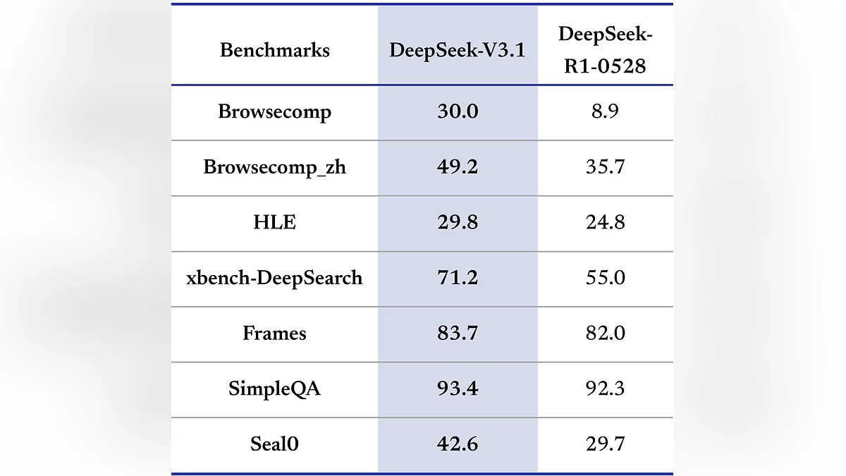 Нова модель залишається повністю безкоштовною для використання в чат-інтерфейсі, а для розробників зміниться вартість API-доступу: з 6 вересня інтеграція стане дешевшою — $0,07 за 1 млн токенів вводу. DeepSeek-V3.1 показала високі результати в тестах. У бенчмарку SVG Bench вона набрала 53,1%, обійшовши Gemini 2.5 Flash та GPT-5 Chat. У тесті ADA результат досяг 71,6%.