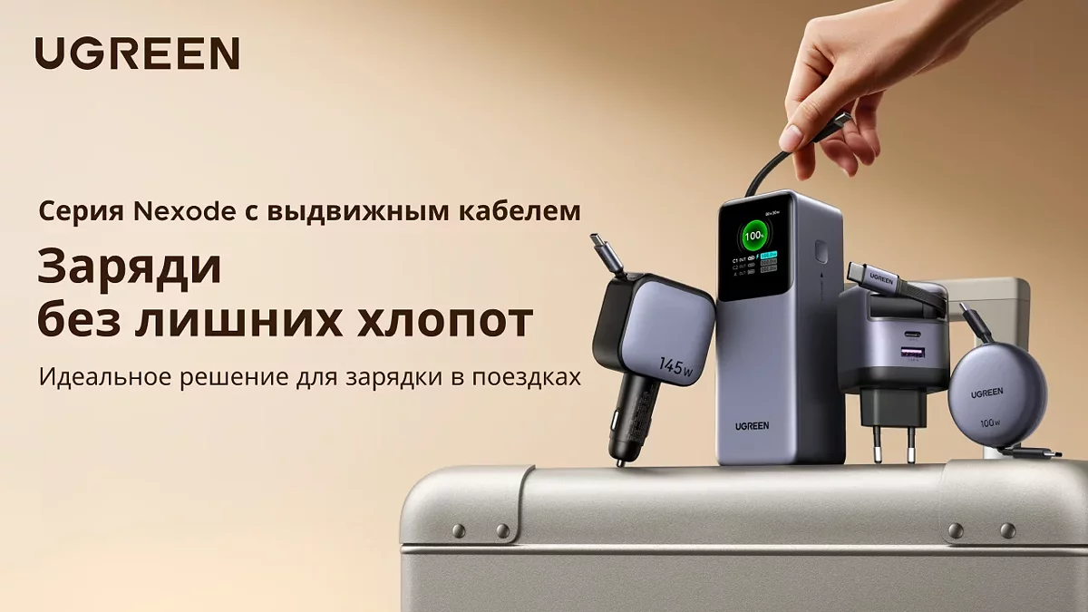 Компания UGREEN, один із лідерів у сфері споживчої електроніки, оголосила про запуск нової серії пристроїв Nexode з висувним кабелем, створеної для зручної та швидкої зарядки в дорозі, в офісі та вдома. Лінійка об'єднує одразу кілька пристроїв: зовнішній акумулятор ємністю 20000 мАг з потужністю до 165 Вт, зарядний пристрій 65 Вт, автомобільний адаптер 145 Вт та кабель USB-C 100 Вт.