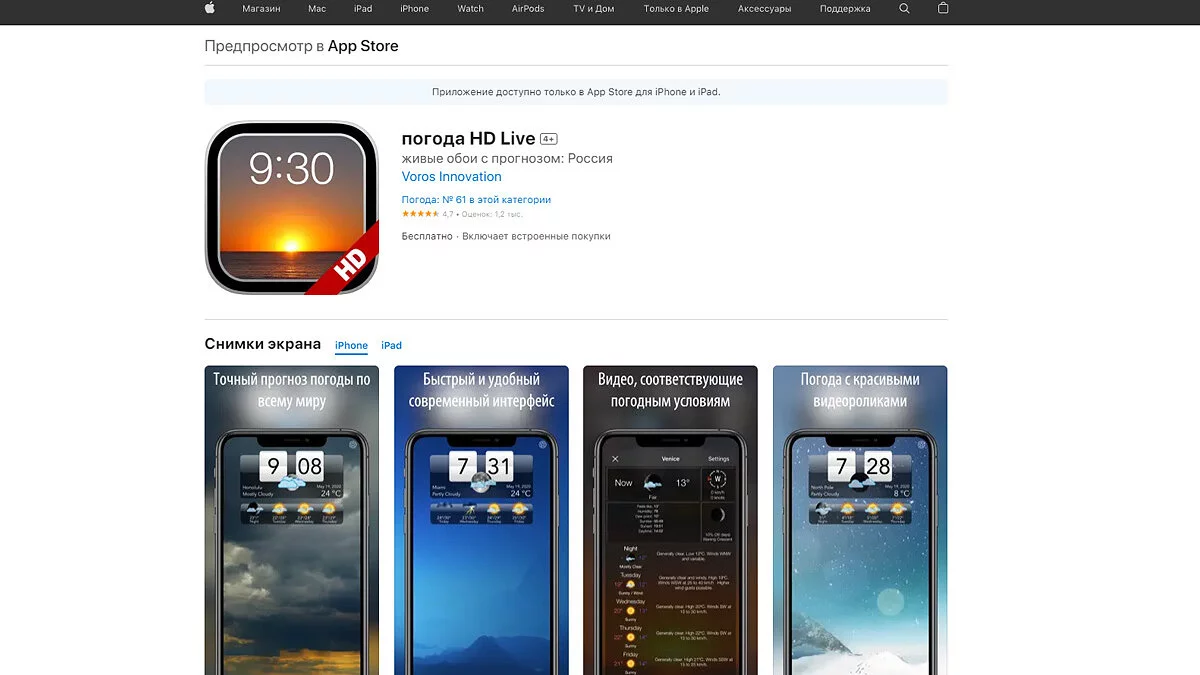Гарне і функціональне додаток для вашого iPhone. Програма відображає відповідні віджети на екрані в залежності від погоди, супроводжуючи це красивими анімованими роликами.