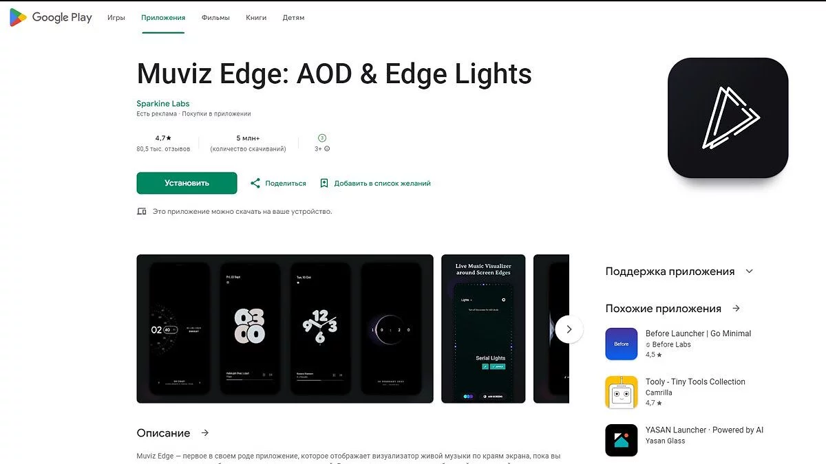 Додаток-візуалізатор музики. Головна вимога до встановлення — Android 5.0 або вище. Програма додає анімований індикатор по краях екрану, який буде рухатися в такт трекам. Можна налаштувати відображення навіть при вимкненому дисплеї.