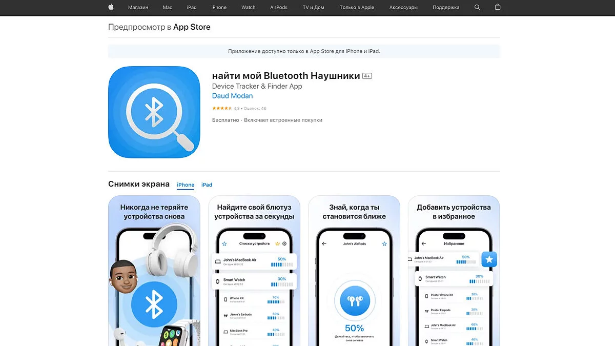 Часто втрачаєте навушники від свого iPhone? Не засуджуємо, а пропонуємо поглянути на цей додаток. З ним ви зможете швидко знайти втрату будь-якого Bluetooth-пристрою за принципом «гаряче-холодно»: просто обійдіть квартиру з увімкненою програмою, стежачи за рівнем сигналу на екрані.