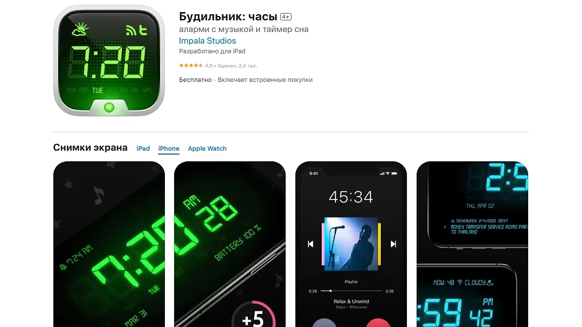 Симпатичне за дизайном і корисне додаток-будильник. З ним ваш iPhone перетвориться на настільні годинники, що відображають час, погоду, дату та заряд батареї. Можна включити таймер сну, щоб задрімати під улюблену музику, миттєво активувати ліхтарик вночі, налаштувати свою палітру кольорів, підключити RSS-стрічку новин та багато іншого.