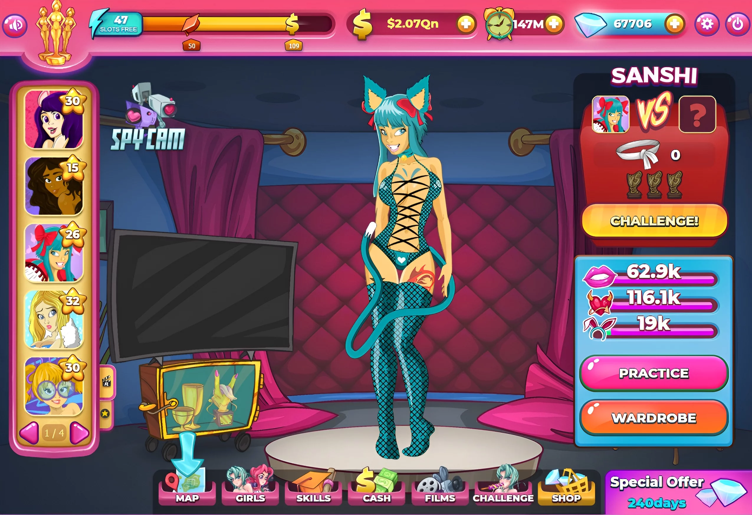Значно цікавіший спосіб заробітку — в кріокапсулах ми знаходимо красунь з різних всесвітів. Тепер потрібно домовитися з ними, розбестити, а після запустити трансляції з їхньою участю на цілу галактику — від танців в оголеному одязі до «пригод» у їх рідних світах. З доходів «каналу» фінансуємо військо.