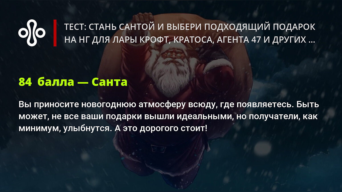 Тест: стань Сантой и выбери подходящий подарок на НГ для Лары Крофт, Кратоса, Агента 47 и других героев игр