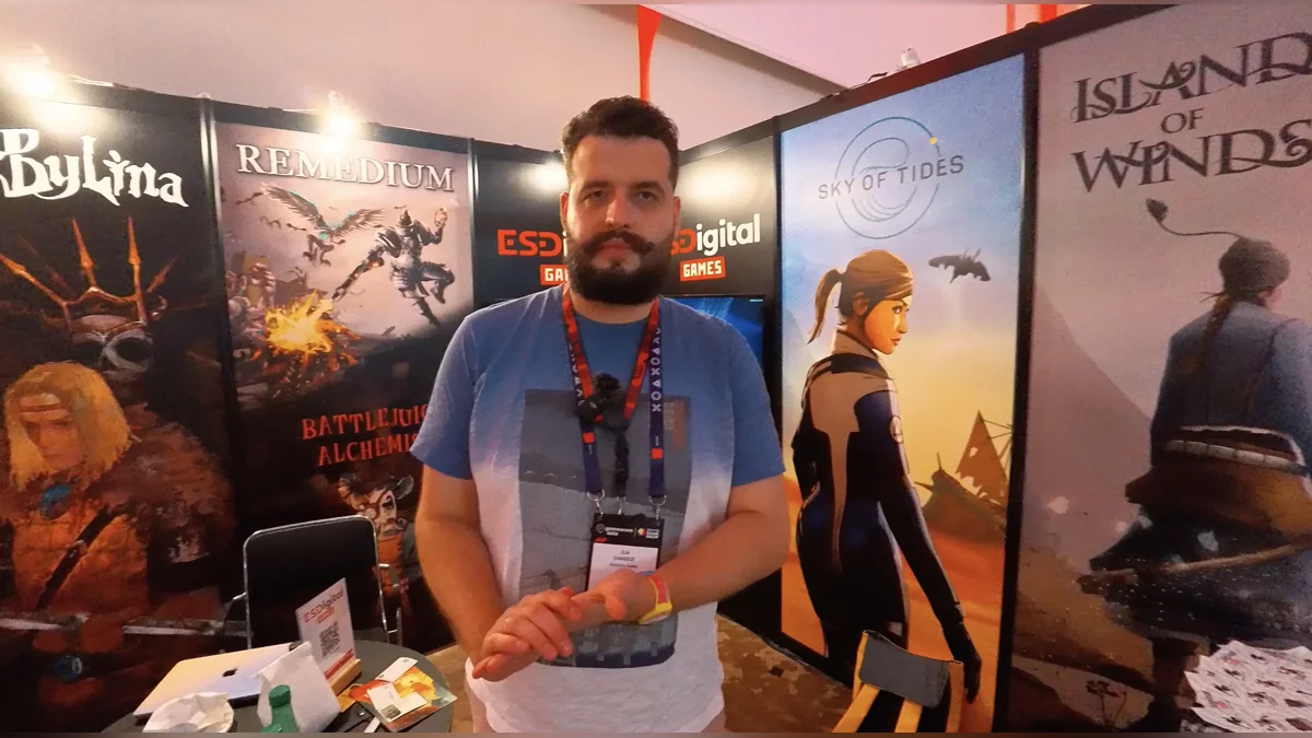 Ілля: Доброго дня, мене звати Сванідзе Ілля, я Head of Marketing ESDigital Games. Ми видавець відеоігор, і сьогодні на gamescom asia представляємо різні проекти, які є в лінійці наших партнерів. Наприклад, ви знаєте, я думаю, гру Bylina. На даний момент ми не видавець цього проекту, але допомагаємо хлопцям з маркетингом. Працюємо разом досить давно і сподіваємося, що проект злетить і буде прекрасно продаватися.