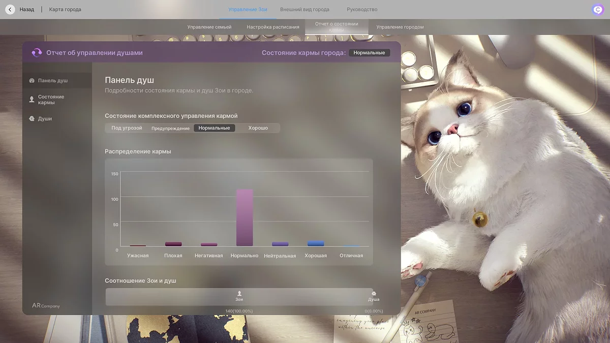 Пояснюємо. У кожного жителя міста є карма. Хороші дії її покращують, а погані — погіршують. І потрібно, щоб у більшості персонажів карма була хорошою, інакше в місті стане складно, наприклад, завести сім'ю і народити дитину. В теорії звучить непогано, а на ділі схоже на костиль: гравцеві потрібно займатися якимось менеджментом карми і стежити, щоб все населення себе добре поводило. І не дай Будда, якщо хтось занадто сильно хлопне дверима, виходячи з дому.